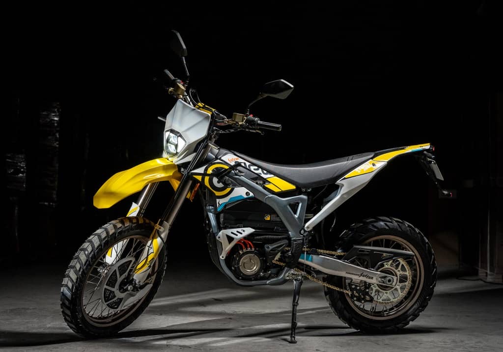 22.5kW peak (~30hp, 40+kW tuned), 520Nm torque, 74-104V/55Ah battery, 120km range @50km/h, 110-120km/h top speed, 127kg, 21”/18” wheels, adjustable susp., ASR traction, BERS regen, modes (Eco/Sport/Rain/Turbo), MX/Enduro/Road variants.
